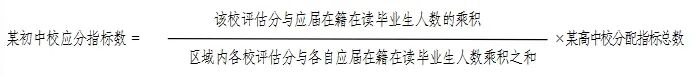 指标分配办法:将部分高中学校招生计划的70%作为分配指标数,综合张店地区各初中学校应届在籍且在该校就读的初中毕业生数和对初中学校素质教育工作评价情况等分配到各初中学校。往届生、初四回原籍考生不计入其分配指标学生基数,录取时不享受指标生资格。