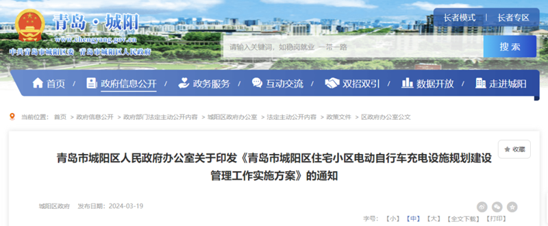 青岛新闻网3月20日讯(记者 任俊峰)3月19日,青岛市城阳区人民政府办公室发布关于印发《青岛市城阳区住宅小区电动自行车充电设施规划建设管理工作实施方案》的通知,具体内容如下;