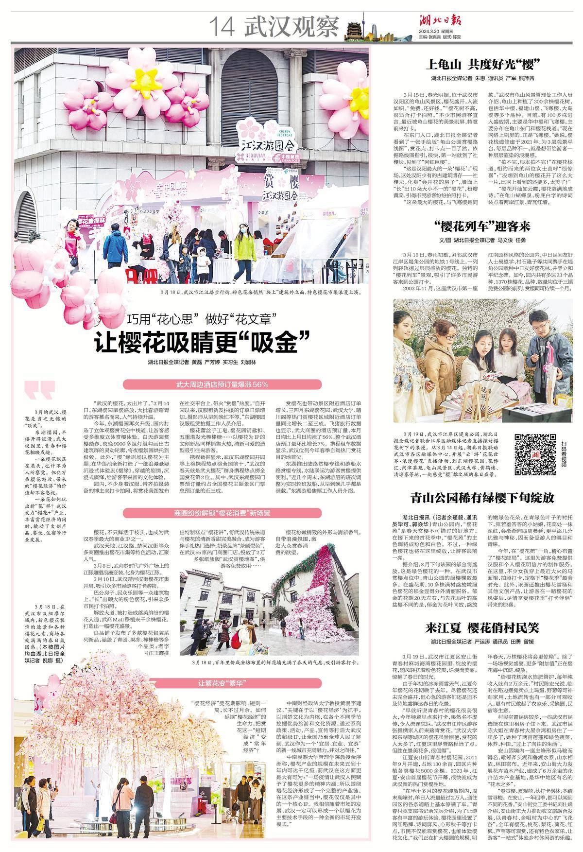 一朵花如何玩出新“花”样?武汉发力“樱花+”产业,丰富赏花经济的同时,撬动了文创产品、餐饮、住宿等行业发展。