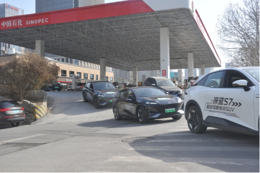 自驾游车队有序驶出加油站