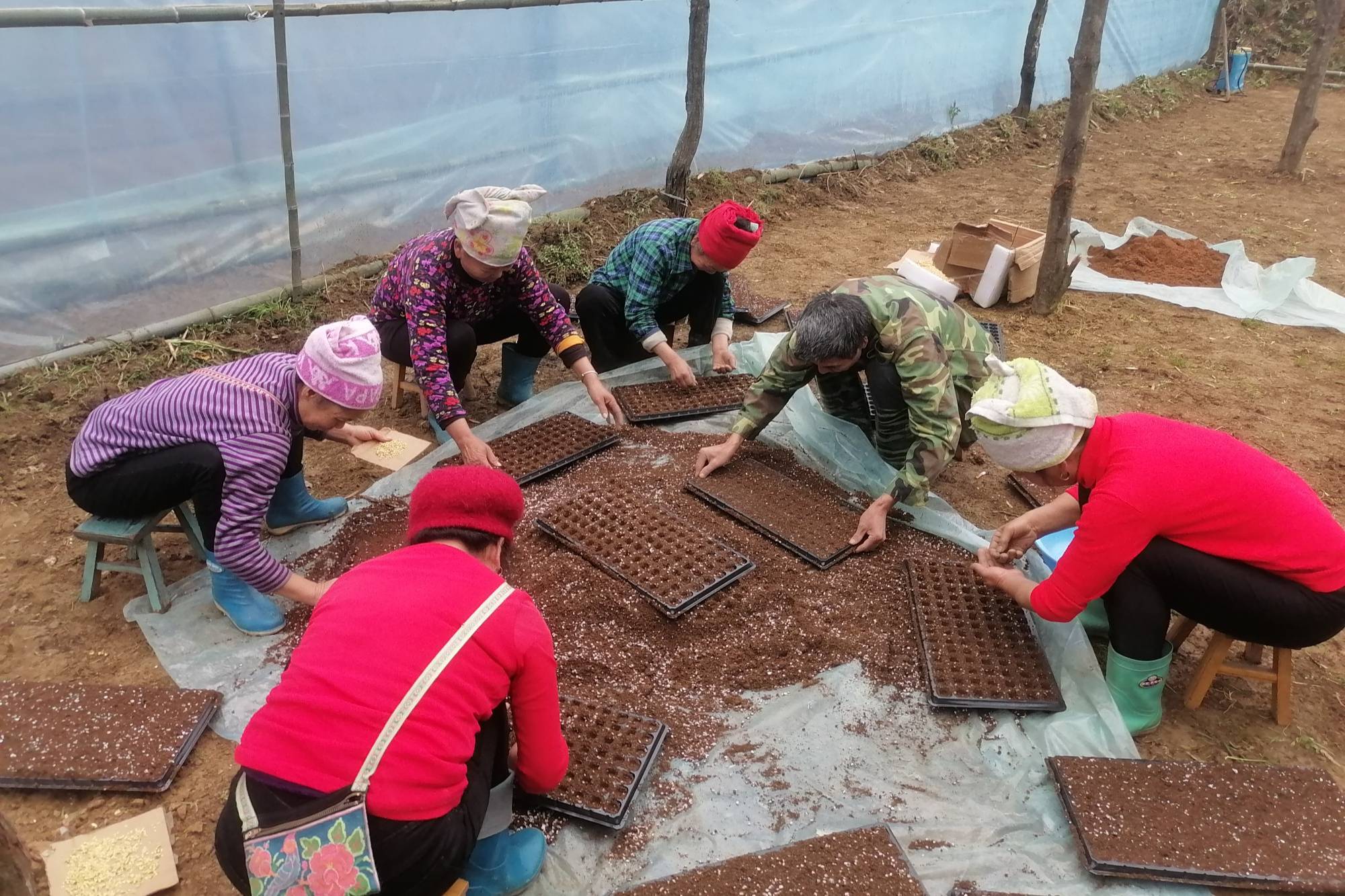 登界村农户正进行辣椒育苗摆盘(黎平县委宣传部供图)