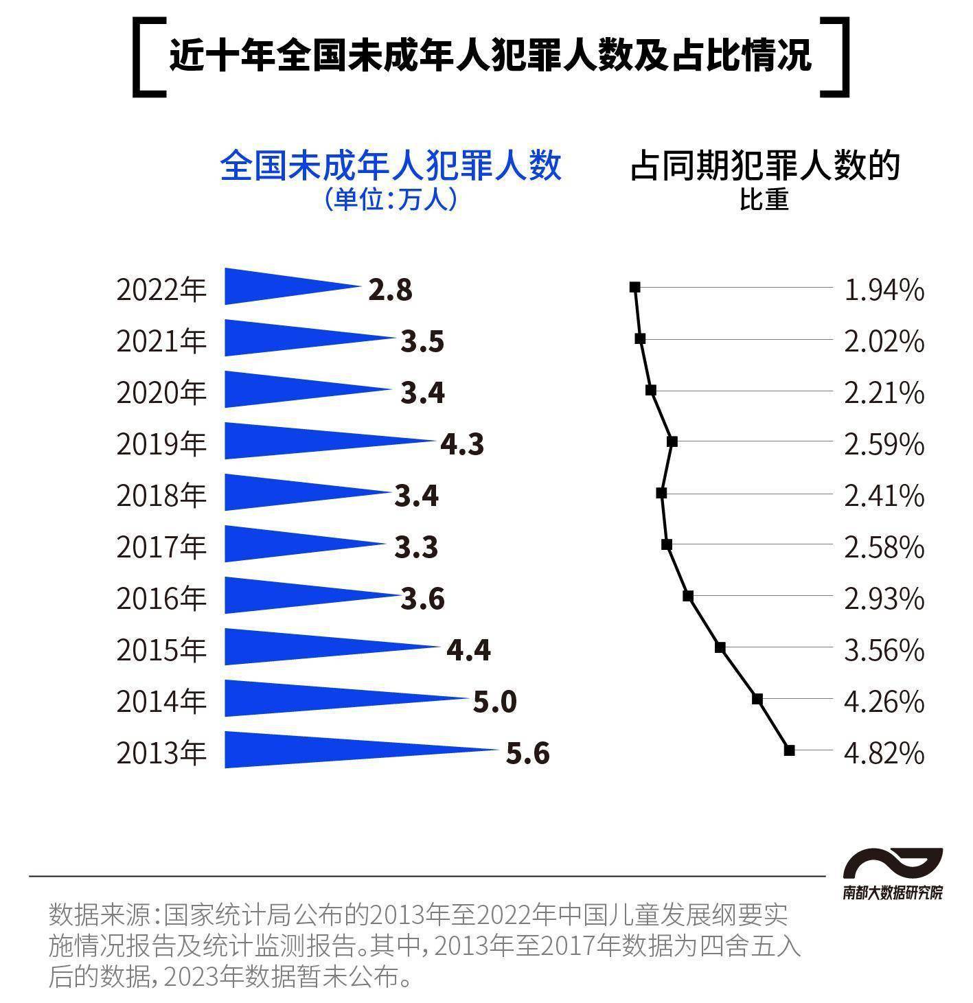 当前我国未成年人犯罪现状如何?涉罪未成年人有何特征?校园欺凌和暴力犯罪有何变化?南都大数据研究院梳理了我国近十年未成年人犯罪的相关数据,带你一同了解涉罪少年的背后。