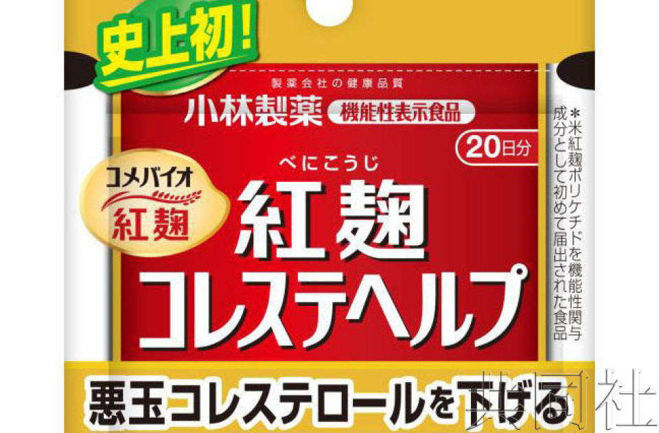红曲是在蒸熟的大米中混入红曲菌发酵后产生的原料,小林制药宣传其可以降低胆固醇。包括着色和调味等在内,红曲被添加到日本酒、点心、面包、酱料等产品中,涉及的范围相当广。