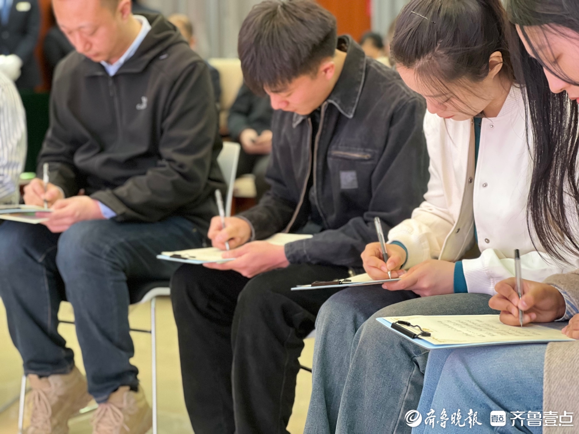 参观结束后,大家在工作人员带领下来到多功能厅开始“若是别离”体验式生命教育活动。首先,张秋霜副馆长简要介绍了济南市殡仪馆今年清明节工作准备情况,对开展祭奠延时服务,推广海葬、花坛葬等情况做了介绍,并发出了文明祭奠,错峰出行,共度安全祥和清明节倡议书,同时着重对生命教育团队组建及工作开展情况进行了介绍。随后,活动正式开始,生命教育讲师林阳引导大家沉浸式思考,假设飞机即将坠毁,时间静止,在生命的最后3分钟,你会想说些什么?你最想做的事,最关心的人,最遗憾的情又是什么?