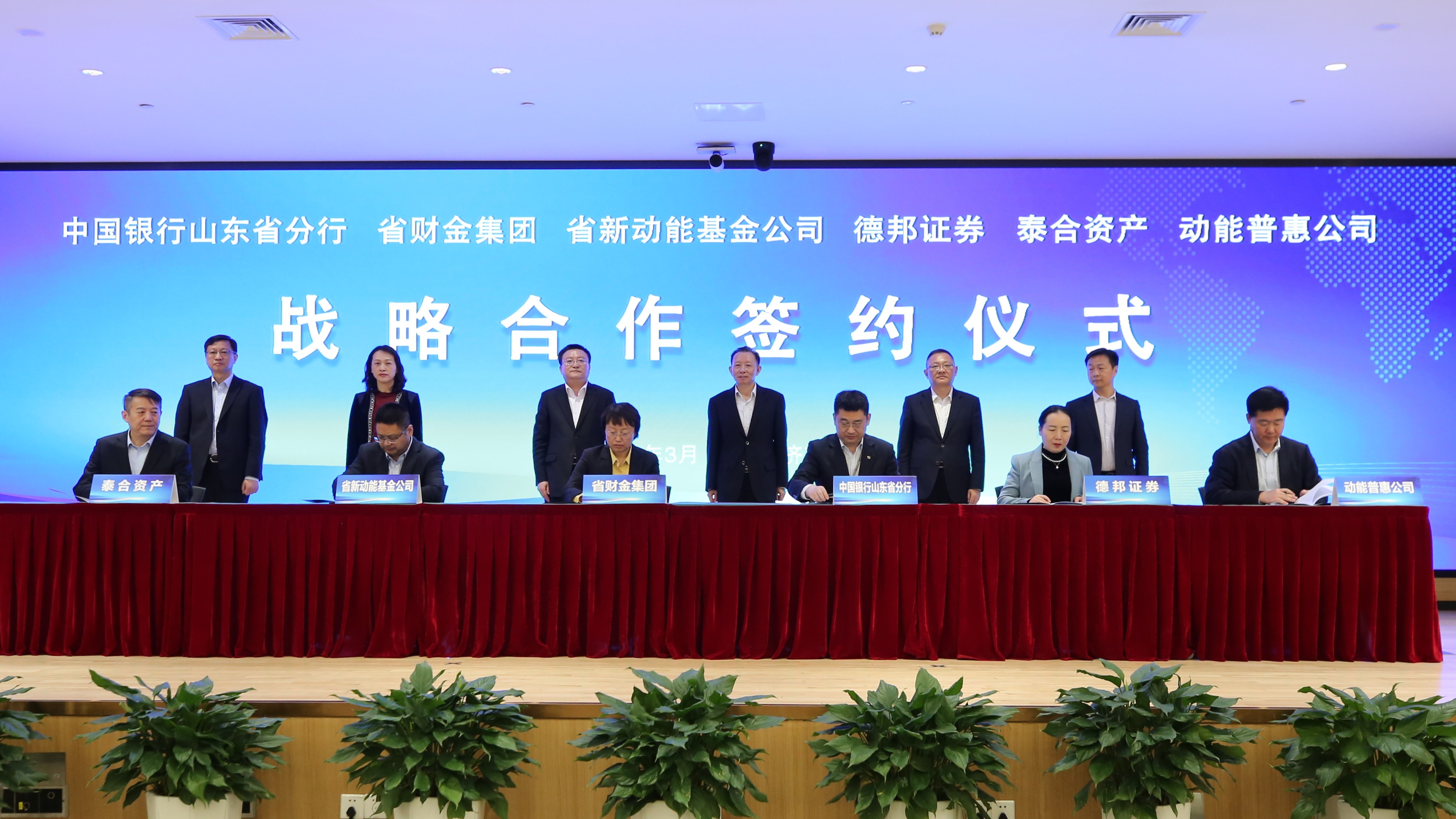 3月29日,中国银行山东省分行(以下简称“山东中行”)与省财金集团、省新动能基金公司、德邦证券、泰合资产、动能普惠公司在济南签署战略合作协议。山东中行徐效强行长、薛冬副行长、胡冲副行长,省财金集团、省新动能基金公司梁雷董事长、省财金集团周苹副总经理、省新动能基金公司李晨董事、德邦证券左畅总裁、泰合资产公司冷冰岩副总经理出席签约仪式。