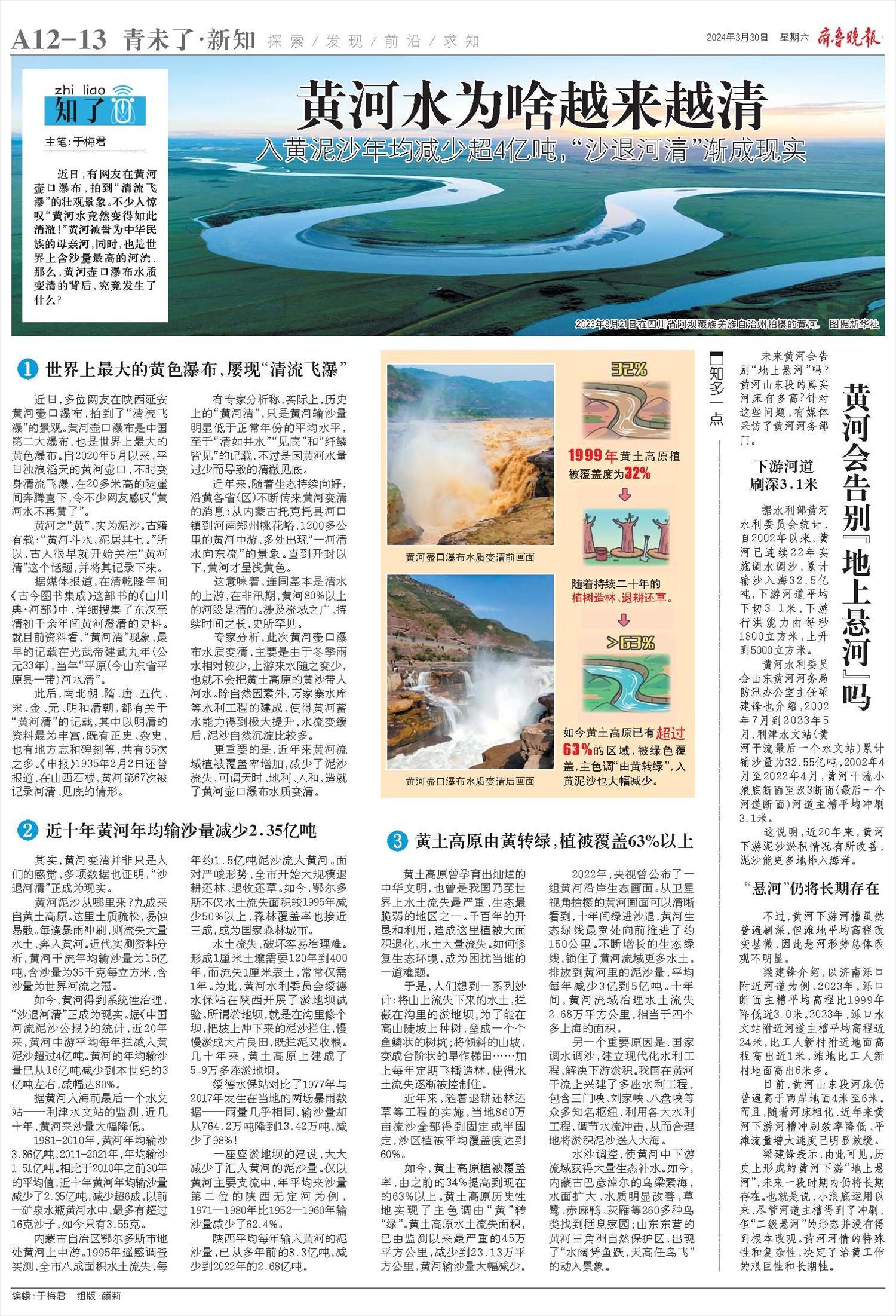 有专家分析称,实际上,历史上的“黄河清”,只是黄河输沙量明显低于正常年份的平均水平,至于“清如井水”“见底”和“纤鳞皆见”的记载,不过是因黄河水量过少而导致的清澈见底。