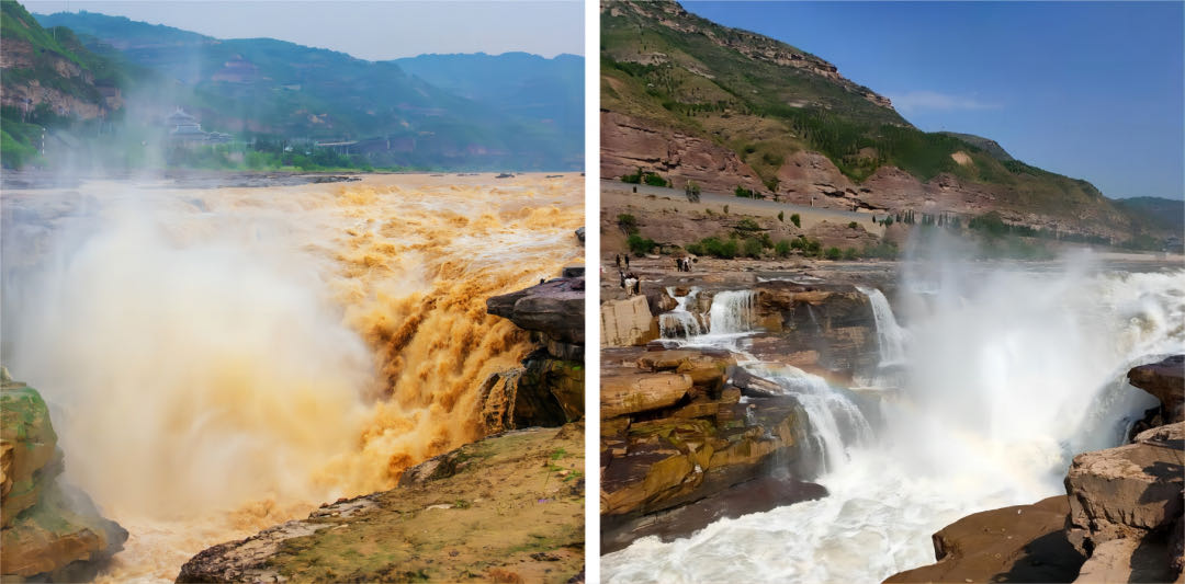更重要的是,近年来黄河流域植被覆盖率增加,减少了泥沙流失,可谓天时、地利、人和,造就了黄河壶口瀑布水质变清。