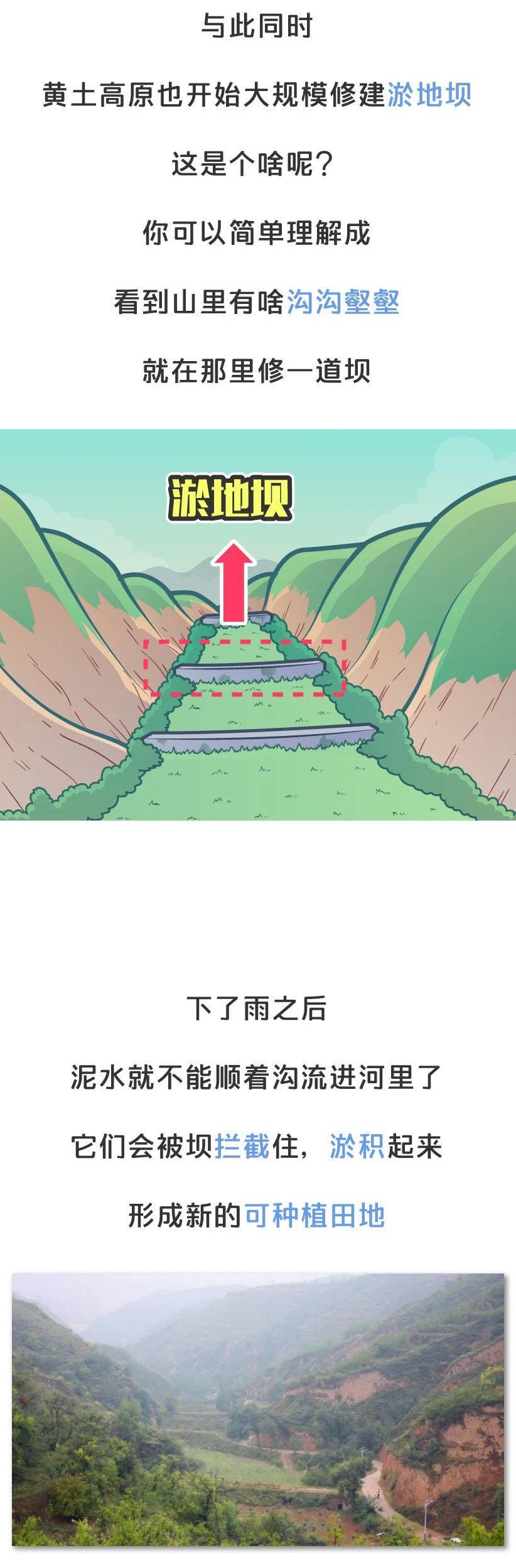 于是,人们想到了一系列妙计:将山上流失下来的水土,拦截在沟里的淤地坝;为了能在高山陡坡上种树,垒成一个个鱼鳞形状的树坑;将原本倾斜的山坡,变成台阶状的旱作梯田……加上每年定期飞播造林,使得水土流失逐渐被控制住。