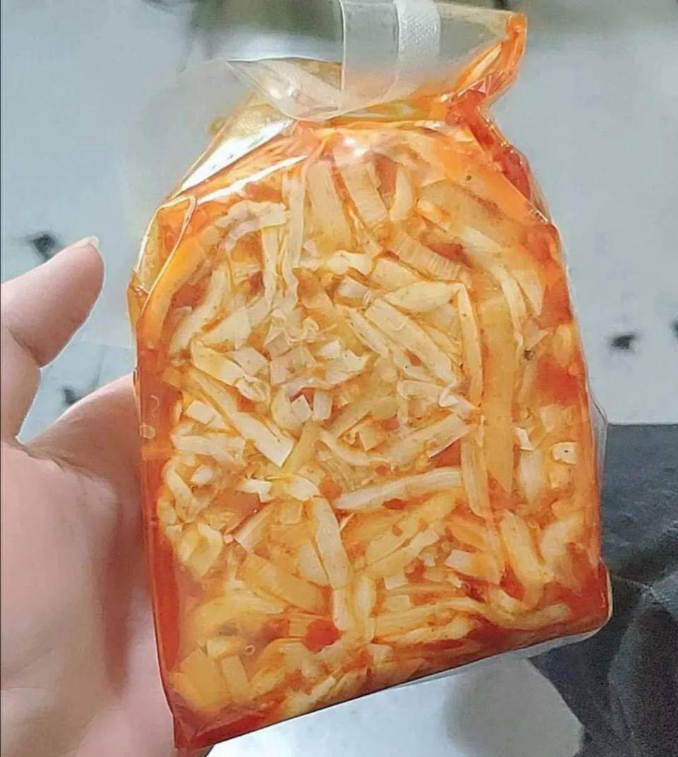 即便同一批笋,腌制手法和储存方式不同,也会导致“臭”的段位不同。不合格的酸笋,颜色发黑,散发着一股腐臭味;普通的酸笋,咬起来偏硬、易塞牙、气味刺鼻;品质好的酸笋,色泽金黄、口感爽脆,带着沁人心脾的醋酸香气,“臭”得有分寸,闻一口就上头。