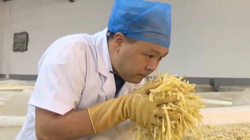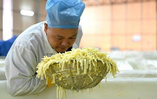 柳州螺蛳粉年销售额数百亿,酸笋品质也千差万别。那么,哪种酸笋“臭”得更地道,哪种酸笋“臭”得更劣质?此时,“闻臭师”就成了把关人。