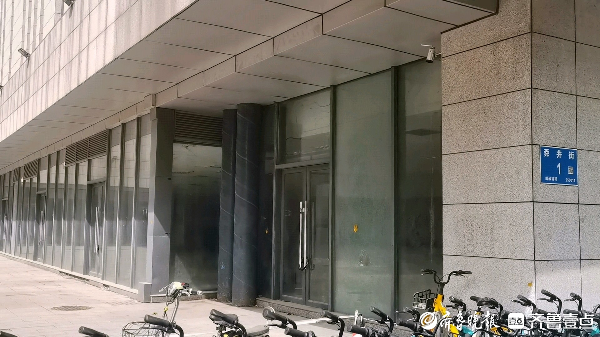 除了东南侧的保安室以外,建筑一层全部大门紧锁。记者以租客身份上前询问,“大楼舜井商厦,整片区域是舜井文化广场,现在一个商户都没有。有保安在这儿值班看着进出的车辆,因为地下停车场还在对外开放、使用。”