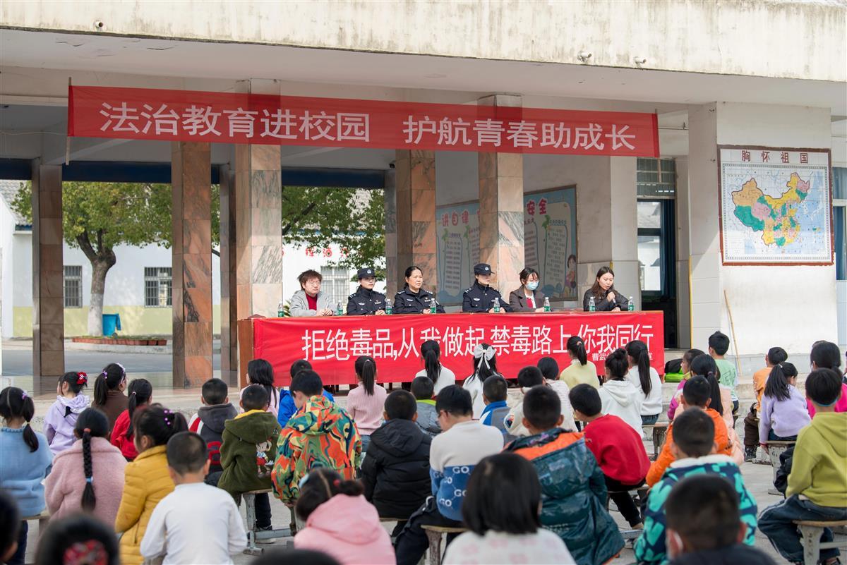 在曹武中心小学,曹武派出所、禁毒大队、反诈中心、镇司法所也联合开展法治宣传教育活动。