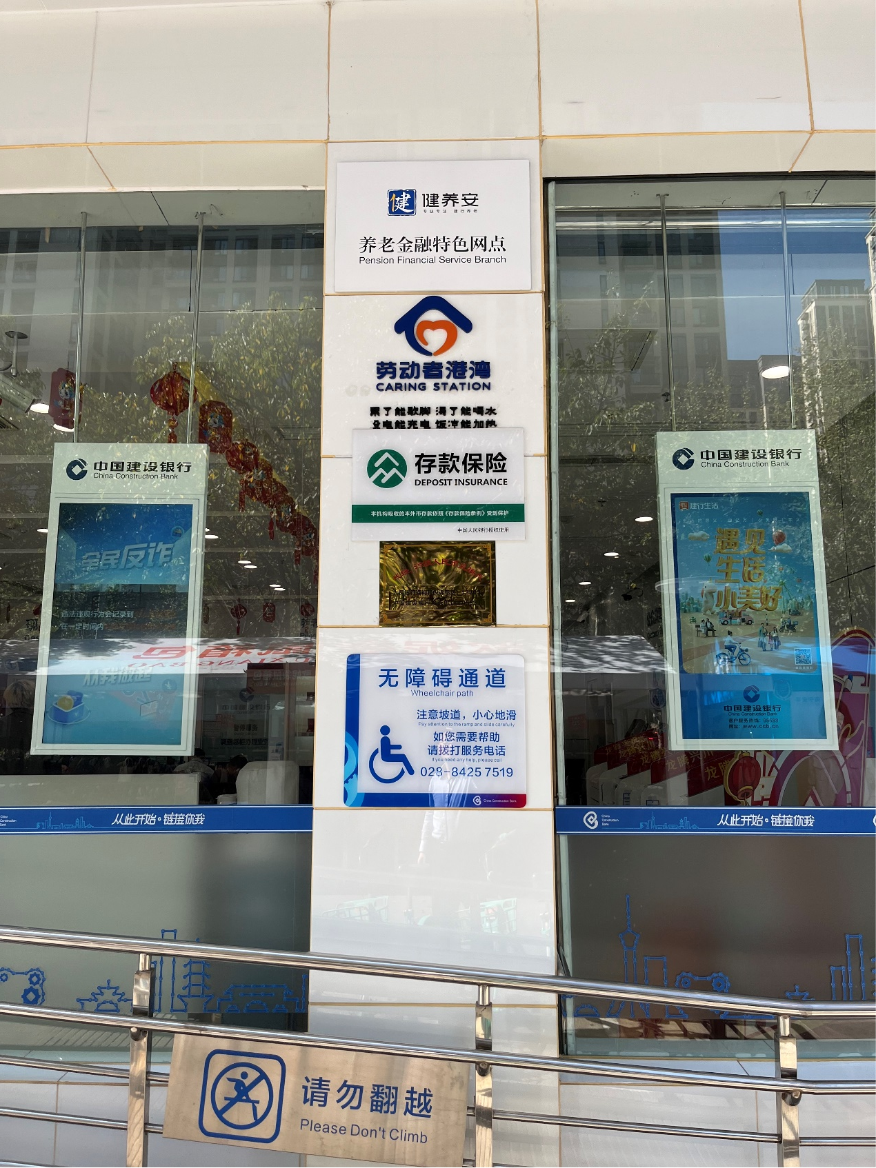 建设银行四川省分行全力打造“健养安”品牌口碑,以成都岷江支行营业部和成都新鸿支行建设路网点为起点,以点带面,将基层网点逐步打造为养老金融服务的物理连接点和养老知识的宣传主阵地,做出养老特色、建行特色、四川特色。