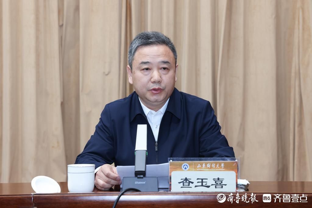 4月7日上午,山东财经大学在燕山校区召开中层以上干部会议,传达省委关于学校党委主要负责同志职务调整的决定。省委决定,查玉喜同志任山东财经大学党委委员、书记,王邵军同志不再担任山东财经大学党委书记、委员职务。