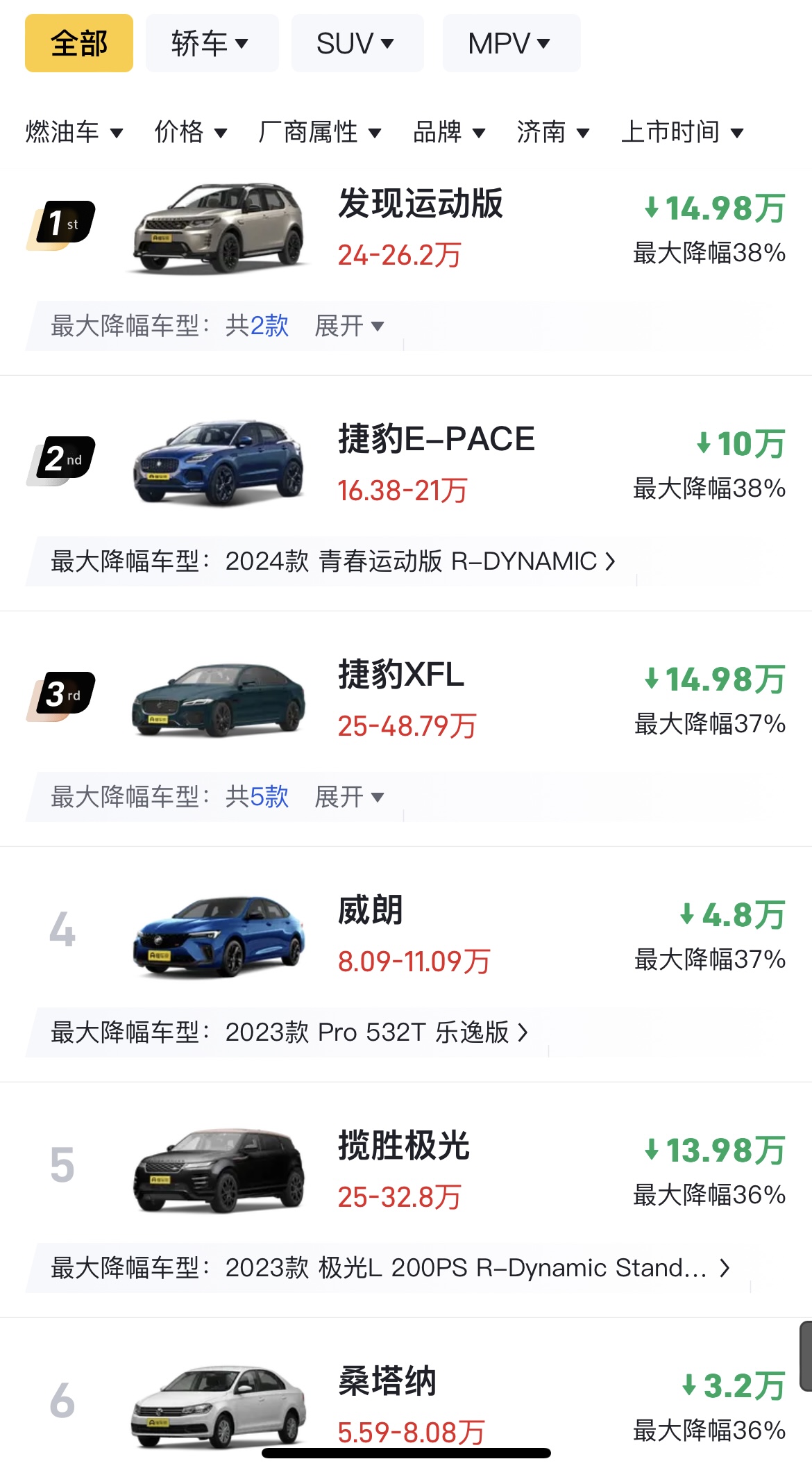 类似的优惠力度同样体现在其他汽车品牌中,“BBA”中的奔驰与奥迪均于年后调整过终端售价,在购买奔驰C级、奥迪A4L级别的热门车型时,消费者的谈价空间可能达到10万元甚至以上。在某汽车垂媒推出的“降价榜”中,多款车型降价超10万元,有车辆降幅高达38%。