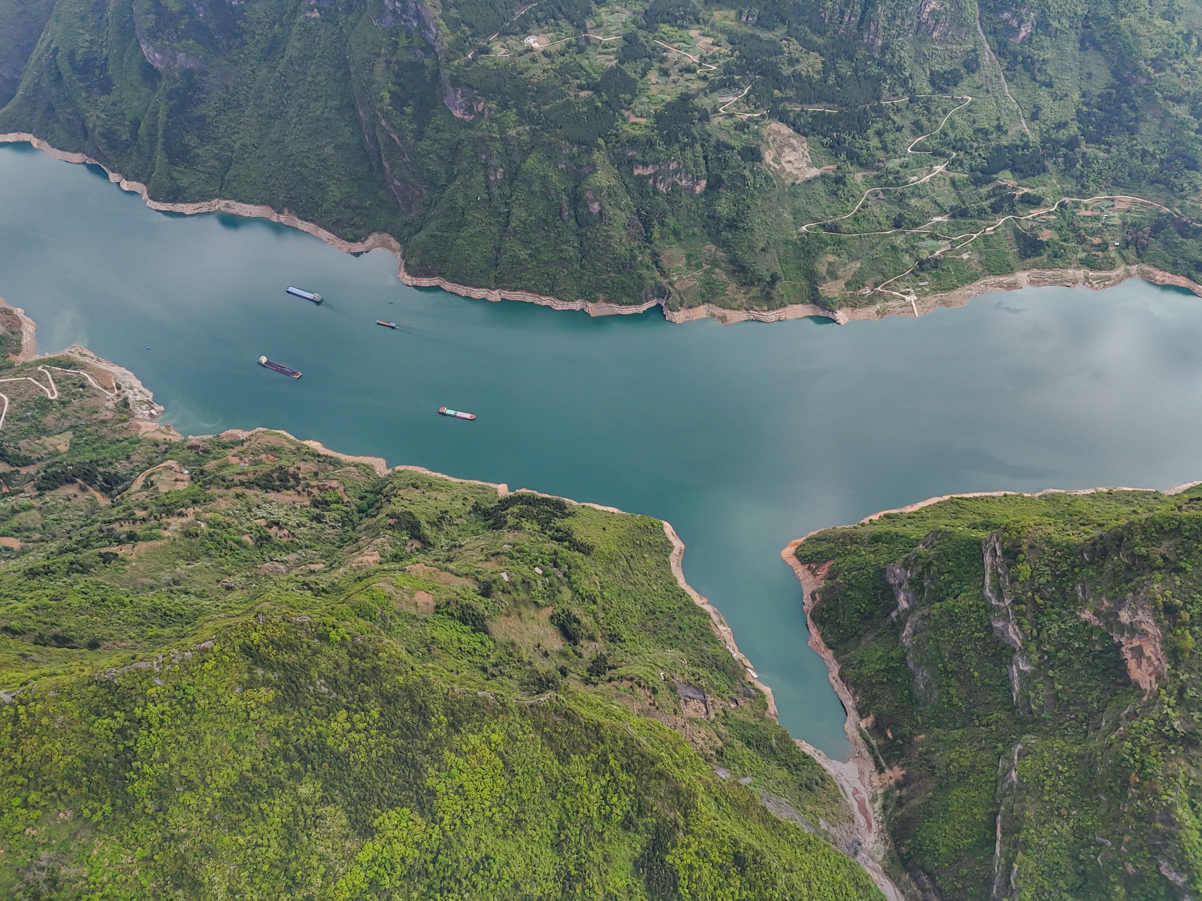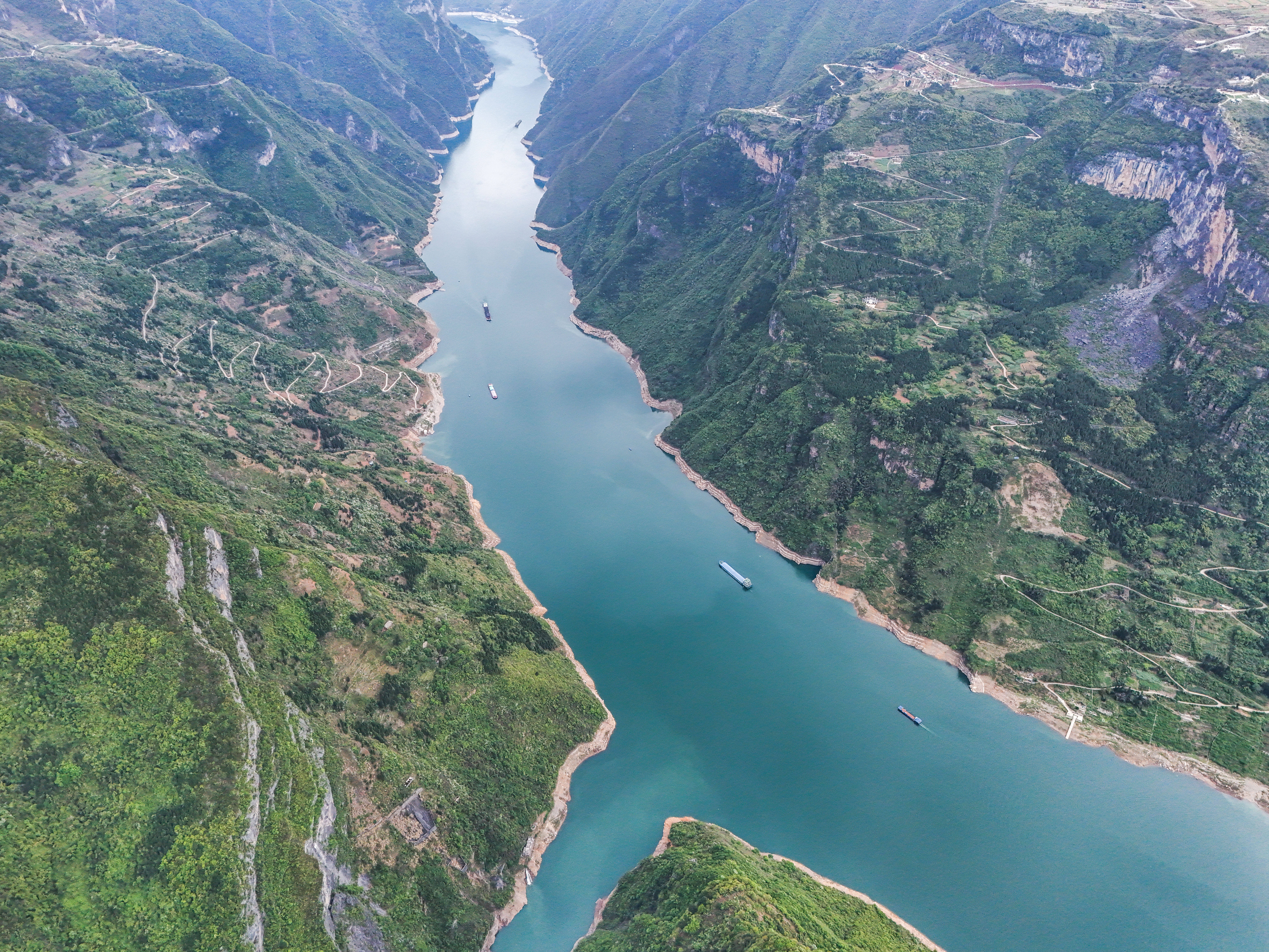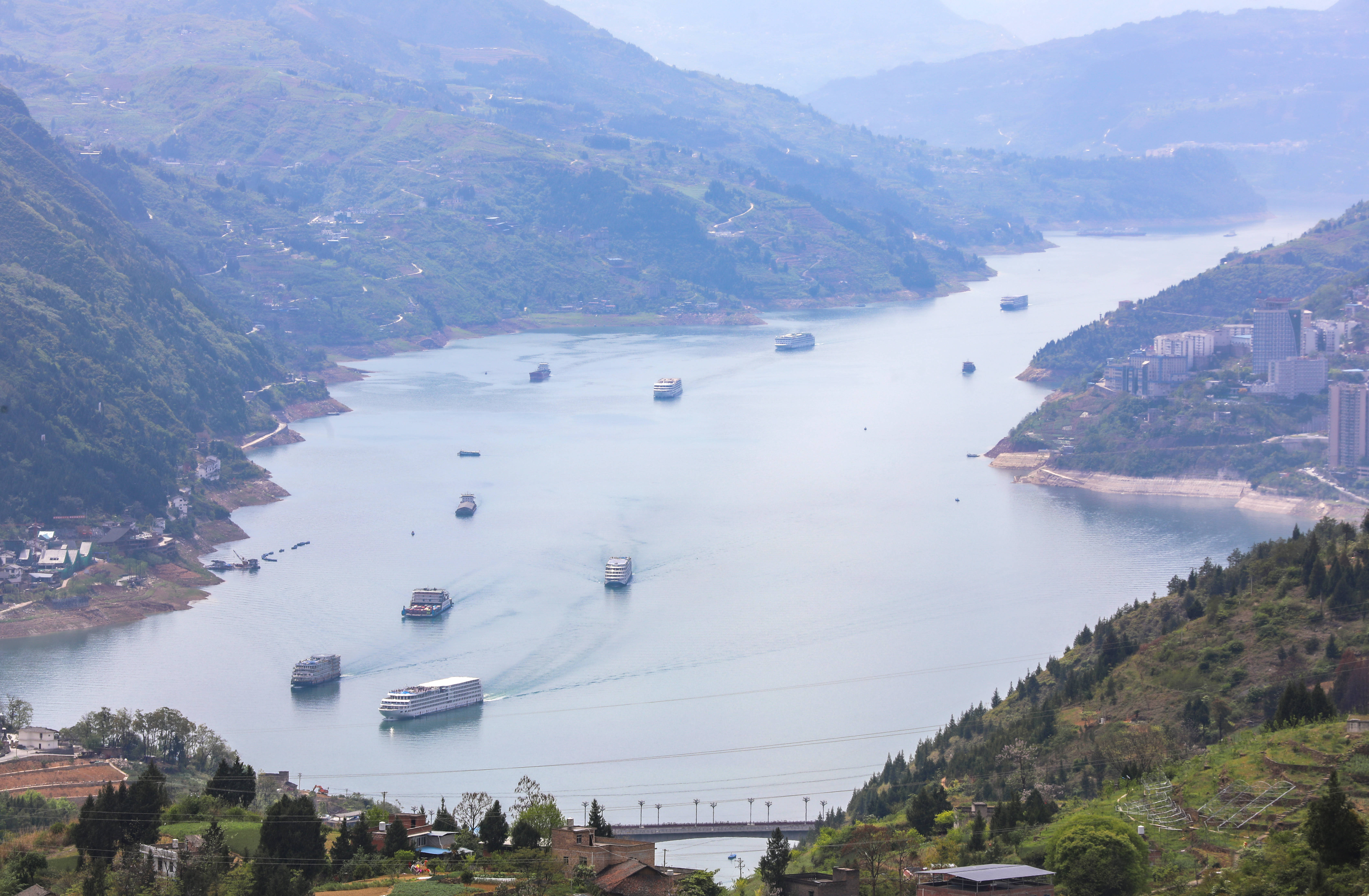 时值春日,在重庆市巫山县境内,一艘艘船只航行在长江三峡巫峡段水域,青山绿水间,船只有序航行。有“黄金水道”之称的长江航运呈现着繁忙的景象。