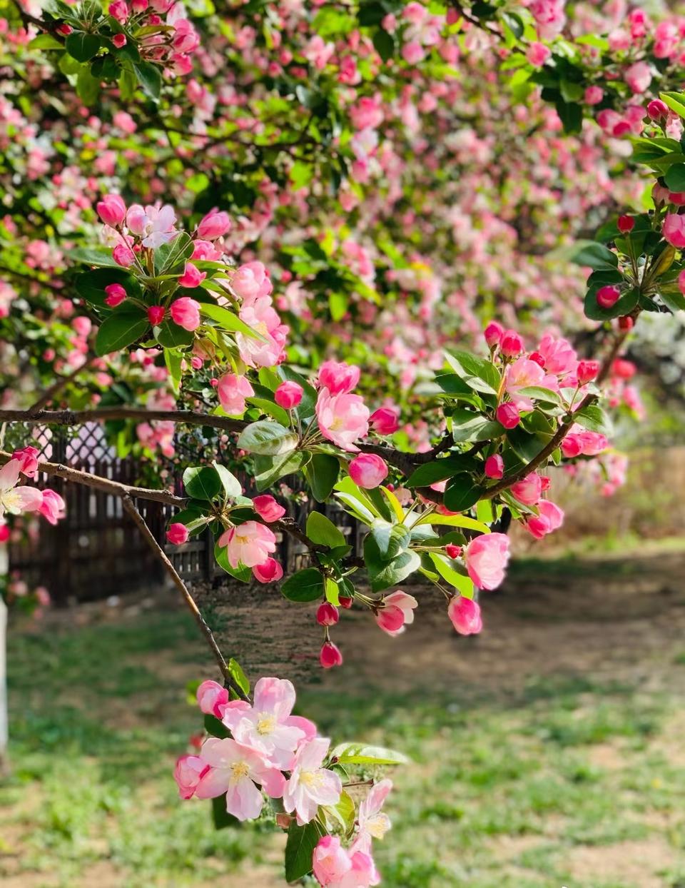 在临沂人民公园,海棠花完全就是这里的主角,一片片,一簇簇、一株株、一朵朵,都是范儿。春风一吹,片片花瓣轻盈而落,地上已是洁白的一层,只是没有黛玉葬花的凄凉,春风拂过的都是春光沐浴的模样。