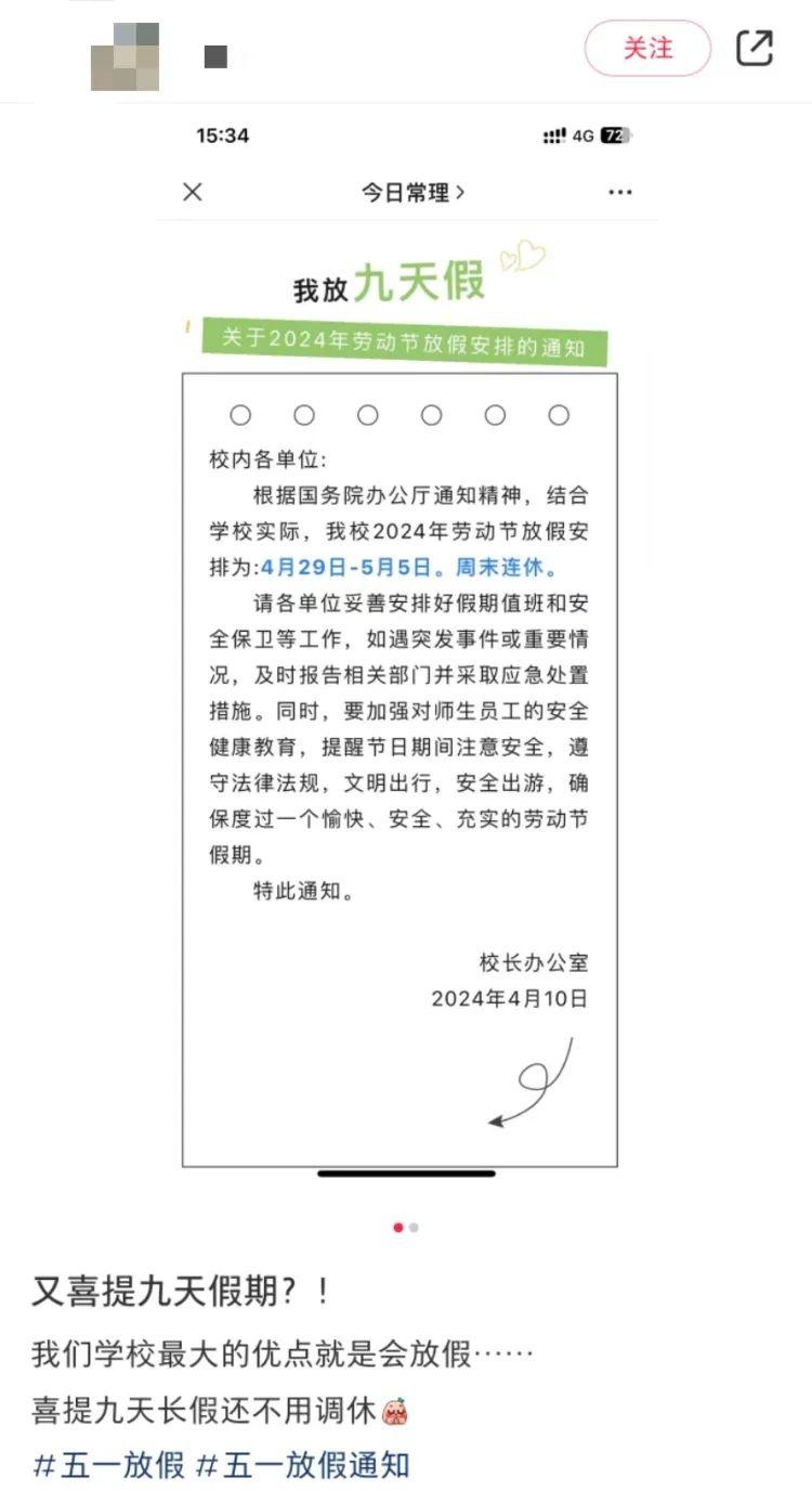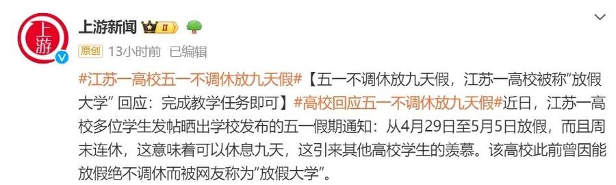 这所高校五一不调休放假9天,被称“放假大学”?回应来了