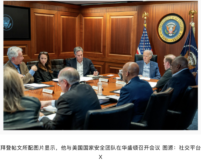 外媒:拜登发文证实与美国国家安全团队会面,讨论伊朗袭击以色列