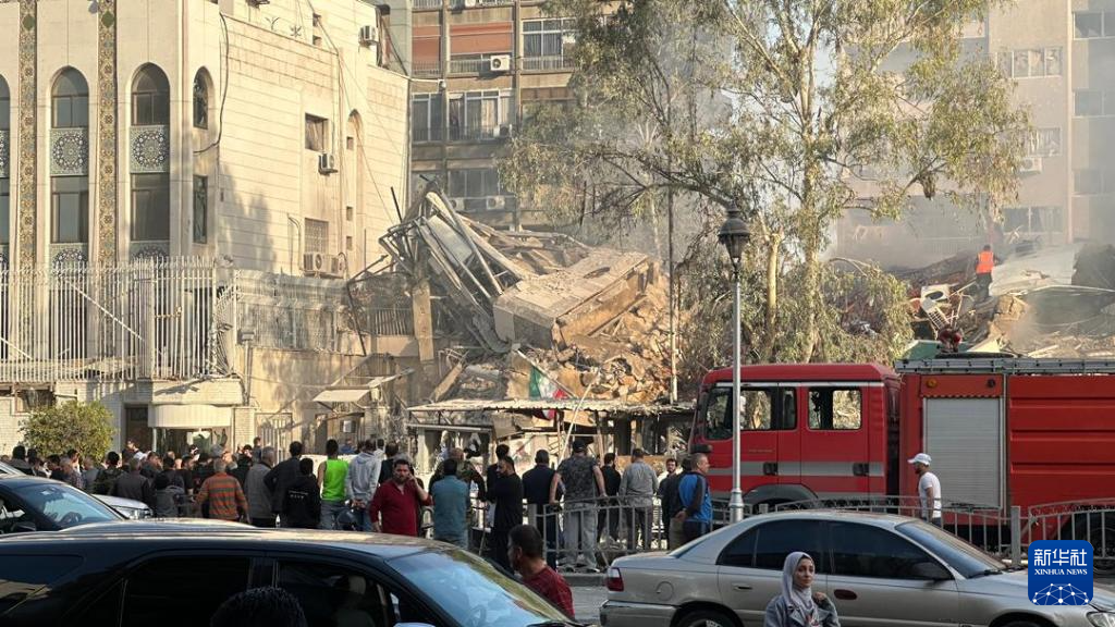 4月1日在叙利亚首都大马士革拍摄的空袭现场(手机拍摄)。