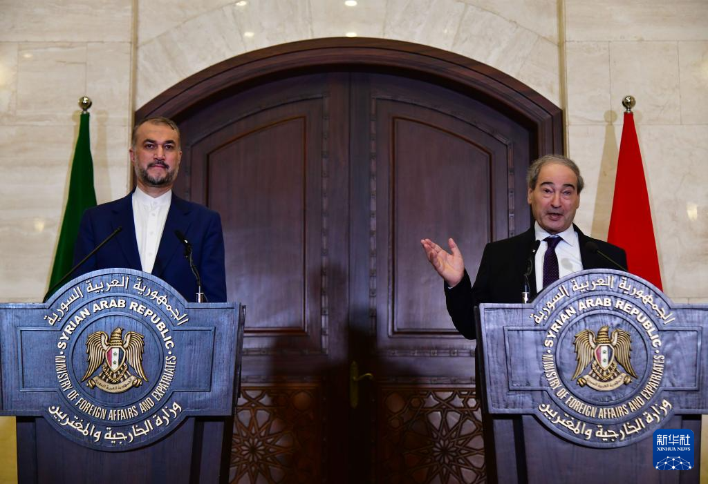 8日,伊朗驻叙利亚使馆领事部门新址开放。伊朗外长阿卜杜拉希扬(左)说,美国对以色列袭击伊朗驻叙使馆的行为负有责任。