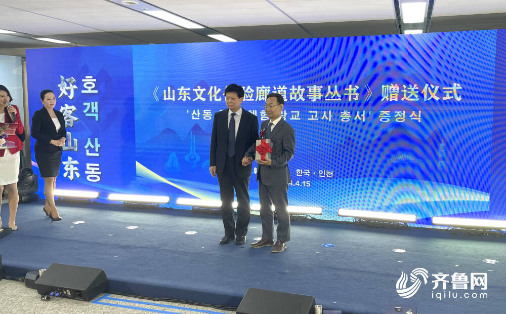 图为中方向韩方赠送《山东文化体验廊道故事丛书》
