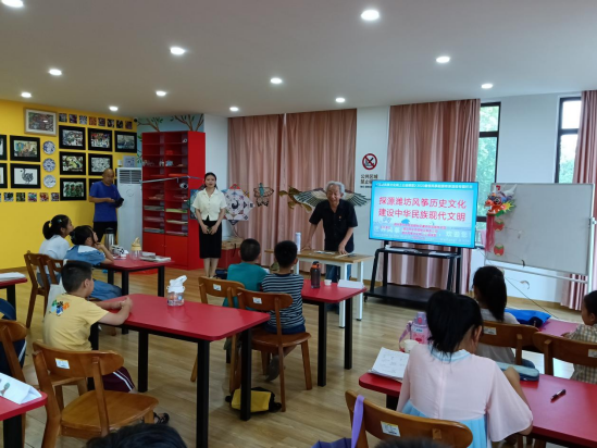 潍坊市高新区社工站充分链接资源,在美术小屋内开展暑期托管班,链接书法、国学、音乐、美术、围棋、电子琴、军体拳等志愿者老师开展各类艺术课程,发掘学生的爱好与天赋;招募大学生志愿者辅导孩子作业;链接潍坊雷霆应急救援中心、潍坊仁邦社会工作事务所、潍坊女人帮义工公益服务中心等社会组织的志愿者队伍,为儿童开展各类安全教育培训;开展传统文化小组,邀请传统工艺老师,帮助孩子们了解木版年画、面塑、风筝等传统工艺的由来以及制作方法,培养儿童认识美、体验美、感受美、欣赏美的能力。