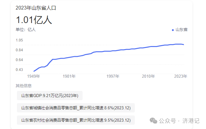 除了上述提到消费最多的广东、湖南、广西、浙江、江苏五省外,人口基数庞大、经济实力不俗的山东,也是佛山万亿家居产业不应忽略的大市场。截至2023年末,山东人口超1亿人,GDP达9.21万亿元,分列全国第二、第三。