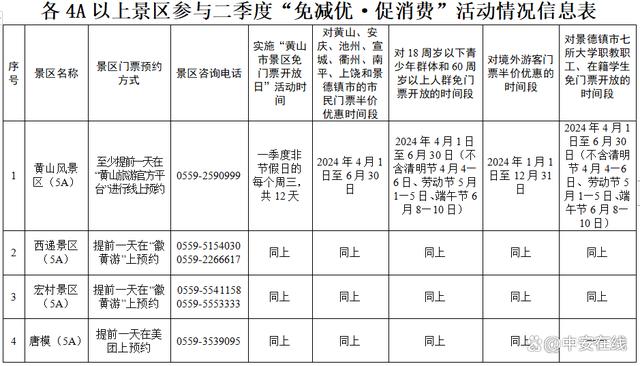安徽多景区宣布:免票、半价