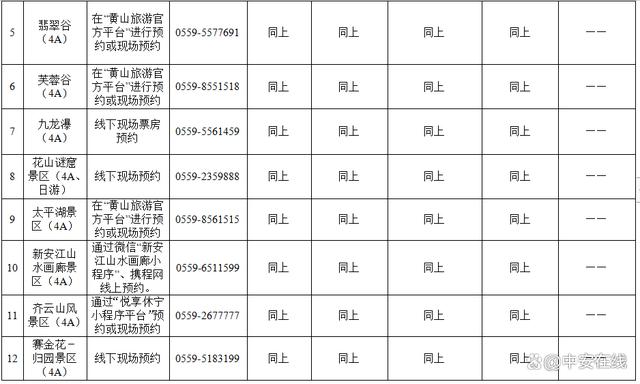安徽部分景区门票优惠活动