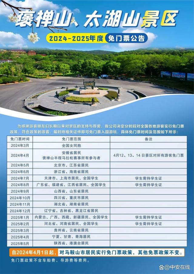 四、马鞍山市景区门票减免公告