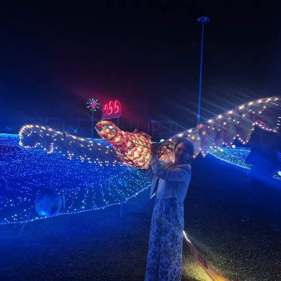 这些彩灯可动可静,有的带动作脖子能转动,手臂能抬放,为假期人们休闲度假增添乐趣。