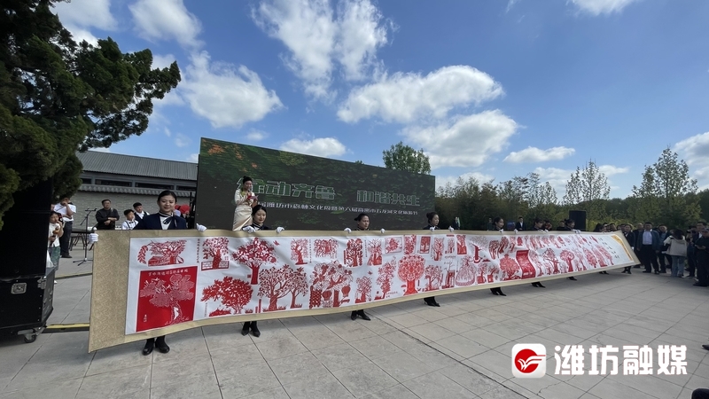 启动仪式上,高密市多位剪纸艺人将古树名木保护与高密剪纸非遗技艺相结合,创作出长29.6米、宽1.2米的剪纸长卷《高密古树》,通过103幅古树名木剪纸,讲好古树故事、做好古树文章、守好古树财富。