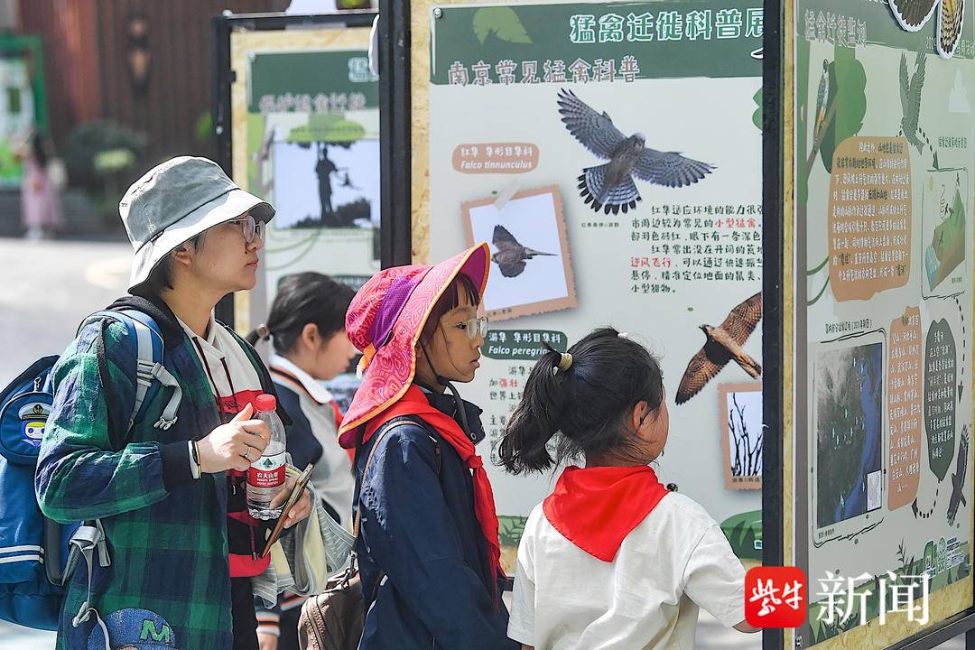 孩子们参观猛禽迁徙科普展