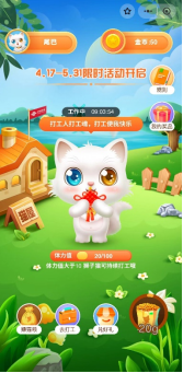 在“联通猫舍”小游戏中,玩家登录后即可领养属于自己的狮子猫,并为其取名,通过签到、每日任务及分享好友获取猫粮,悉心照料属于自己的猫,还可以抚摸猫咪进行互动。获得的猫粮喂给猫咪后,猫咪体力值得到提升,达到指定数值后可进入就业中心选择自己喜欢的工种进行打工啦。工种选择也多种多样,卖萌唱歌、编中国结、做5G推销员、成为联通大使...不同的工种会带来别具一格的互动效果,每一个小细节都能给你带来出乎意料的惊喜,仿佛化身为猫咪的亲密伙伴,与它一同经历各种有趣的冒险。