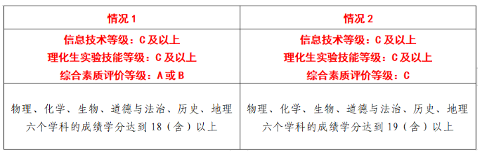 (2)综合素质评价、信息技术、实验技能等级均不低于C等。