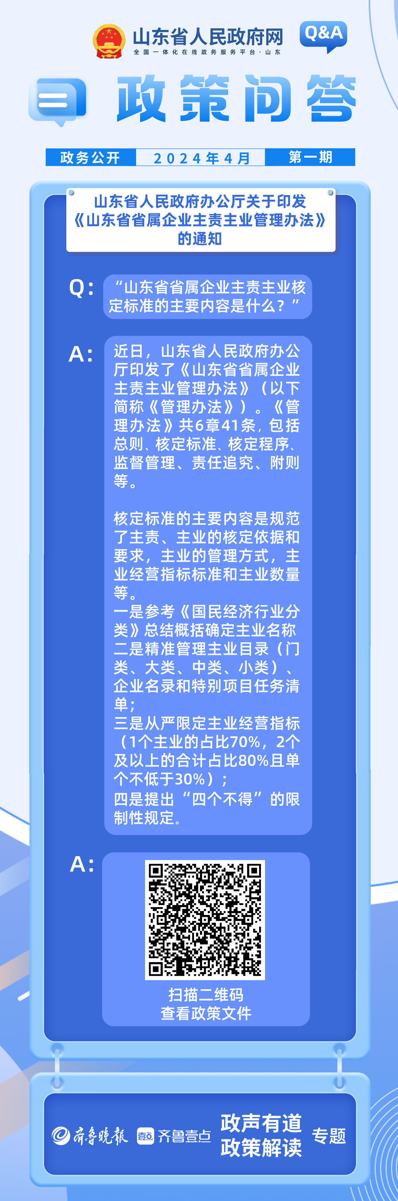 近日,山东省人民政府办公厅印发了《山东省省属企业主责主业管理办法》(以下简称《管理办法》)。《管理办法》共6章41条,包括总则、核定标准、核定程序、监督管理、责任追究、附则等。
