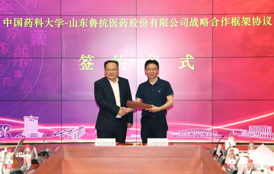 4月24日,鲁抗医药党委书记、董事长彭欣一行到访中国药科大学江宁校区,进行战略合作框架协议签约。中国药科大学校长郝海平等出席此次签约仪式,科学技术研究院常务副院长李志欲教授主持签约仪式。