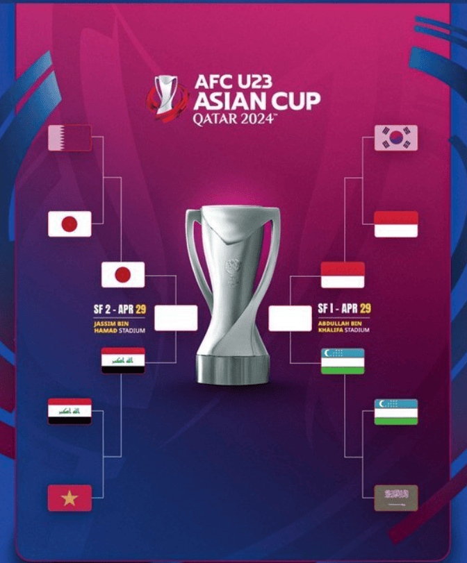在半决赛中,印尼将对阵乌兹别克斯坦,日本对阵伊拉克。