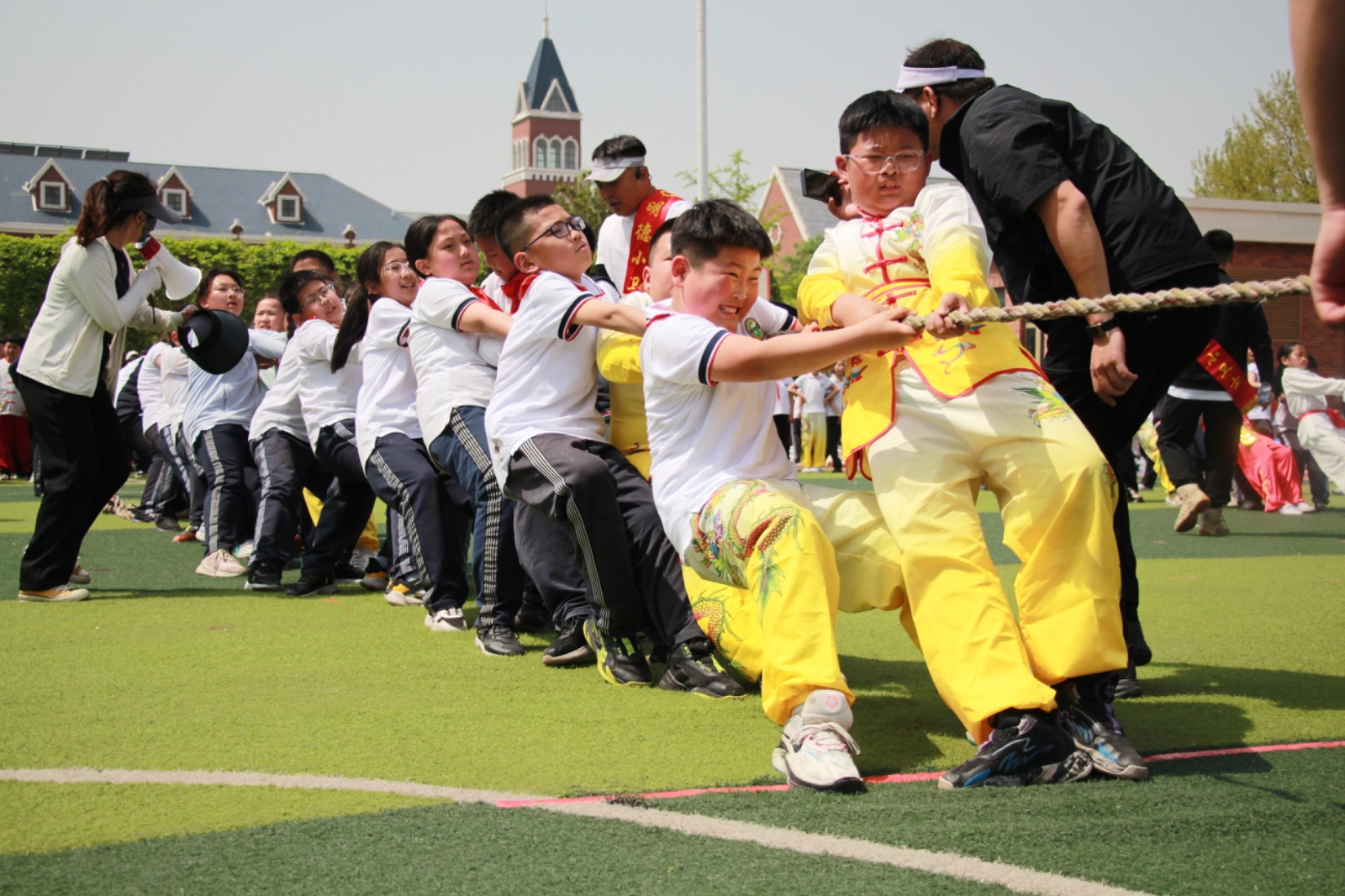 天津外大滨海附校教育集团党委书记、校长王丽说:“本次2024年春季运动会是我校历史上规模最大的一次盛会,我们打破常规,面向人人,实现了师生全员参加,此次运动会,是凝心聚力的盛会、是施展才华的盛会、是展示小外师生精神风貌的盛会。”