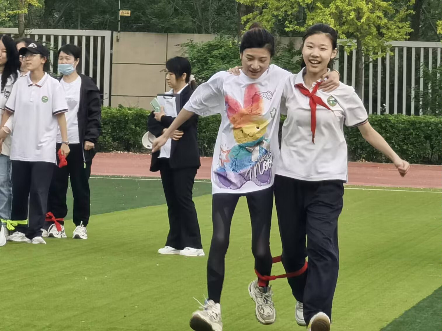 在初中部,运动会设置了短跑、长跑、跳高、跳远、投掷等田径项目,特色的亲子项目和教师项目,学生运动员共计1188人,做到面向全体,让每个学生都能体会到运动的乐趣和集体的力量。