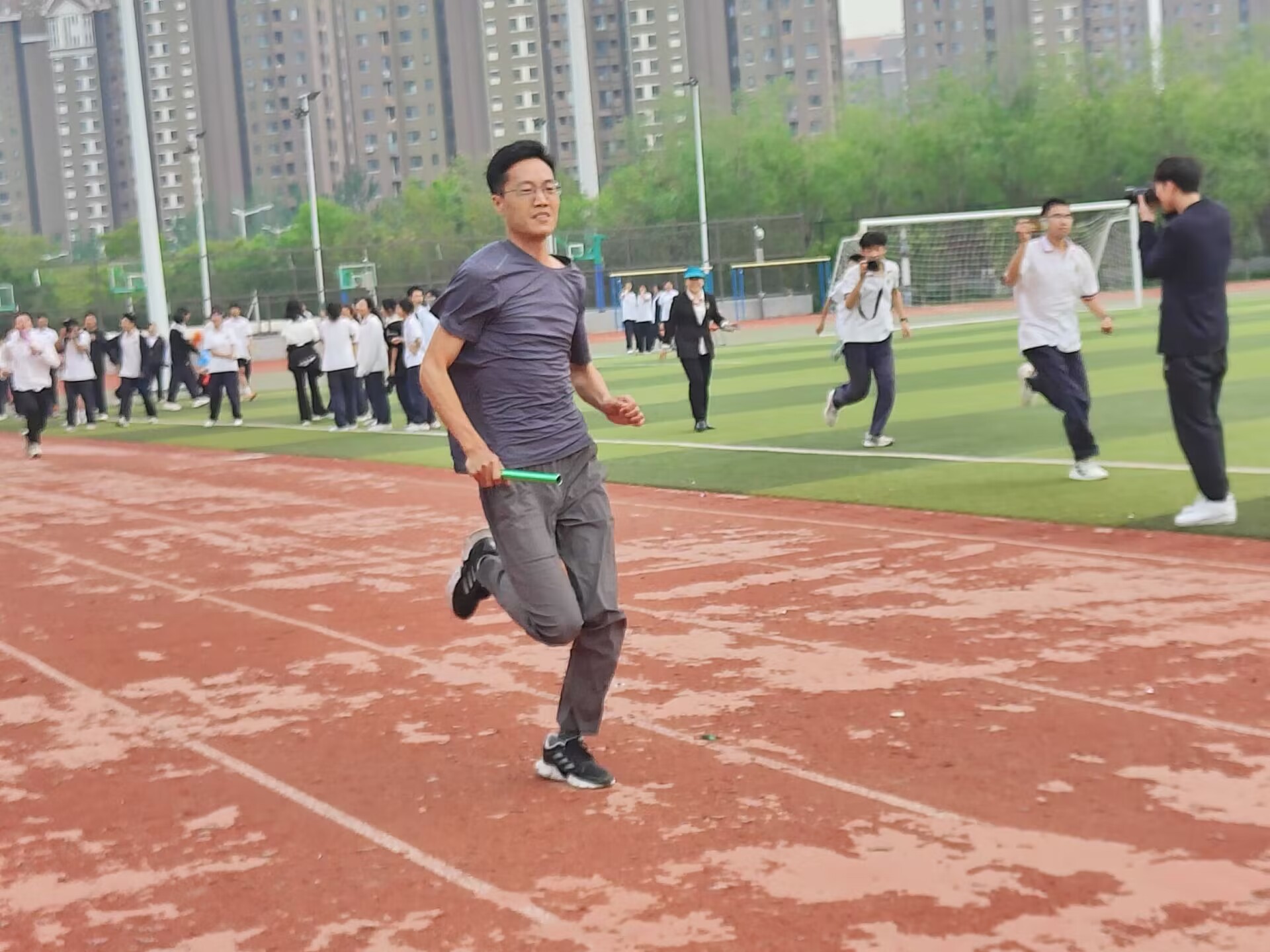 在高中部举办的2024年春季运动会。全体高一高二师生和家长代表参加了此次运动会。在田径接力赛,选手们奔跑在赛道上,接力棒在手中传递,速度与激情交织,每一次冲刺都凝聚着团队的力量。