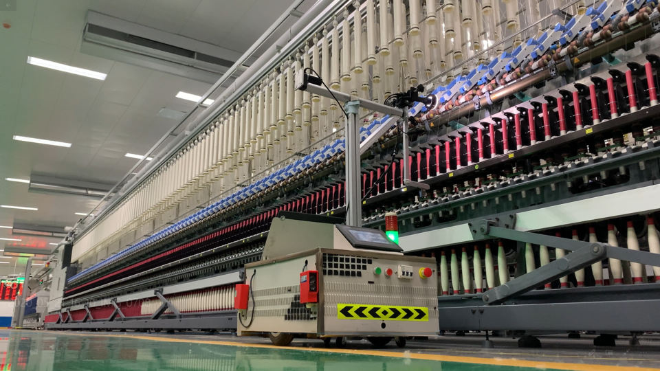 魏桥纺织绿色智能化工厂细络车间,机器人进行在线质量监测