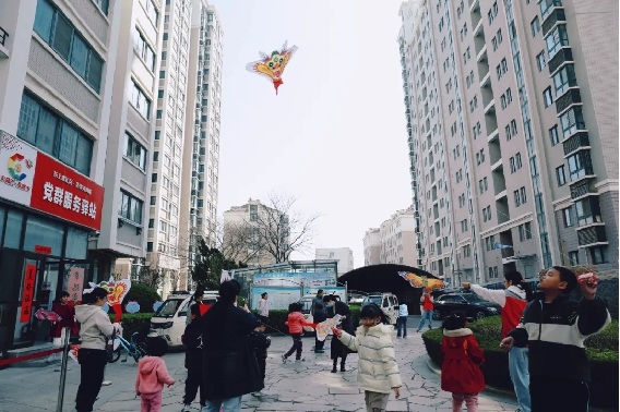 最后,孩子们在范景佩老师和福彩志愿者的带领下来到社区门前的小广场,按照老师教的方法,“有风的时候放一下,没风的时候收一下”,收放之间,风筝便稳稳地飞起来了。如今正是花红柳绿的时节,孩子们牵着五彩缤纷的风筝在小区奔跑,形成了一幅美丽的画面。