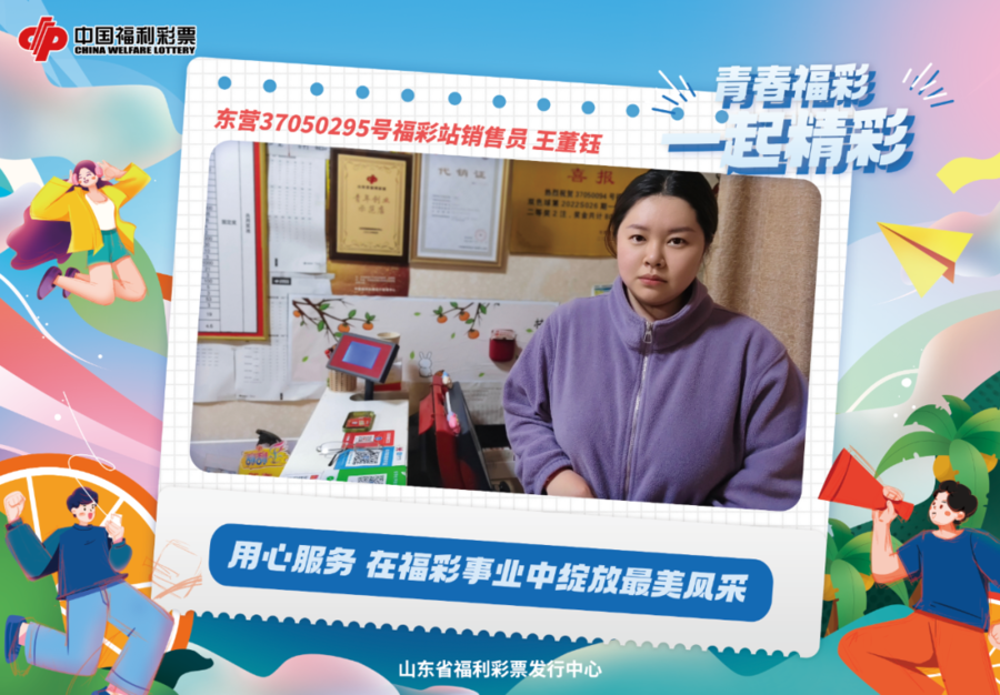 当一批有理想、有追求的新青年活跃在福彩一线的舞台上,以公益为主旋律的青春之歌便悄然奏响。位于东营市青岛路鲁园小区门口的福彩第37050295号销售站,就有一张年轻的面孔,她就是00后销售员王董钰。