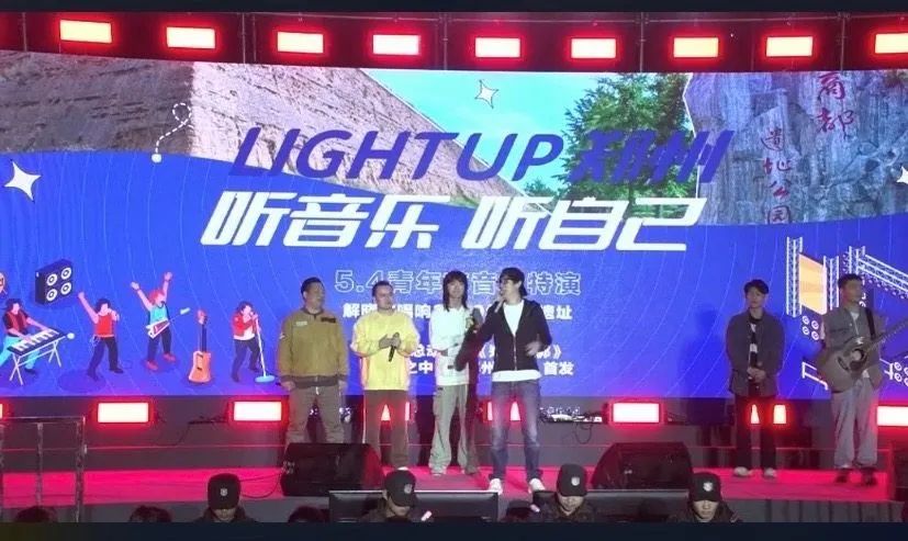 在属于青年的假日里,郑州这座年轻而充满活力的城市再次掀起音乐狂潮。 “Light Up郑州——听音乐听自己”城市音乐舞台在二砂厂、磨街、油化厂、郑州商都国家考古遗址公园倾情开唱, 青年节当晚,知名音乐人解晓东领衔的乐队原创的《全城总动员》《郑州之郭》《郑州之中》《郑州之恋》四首歌曲现场首发。歌曲或激情昂扬、或娓娓道来,融入了戏曲、说唱等元素,表达了青年一代对郑州的真挚感情。