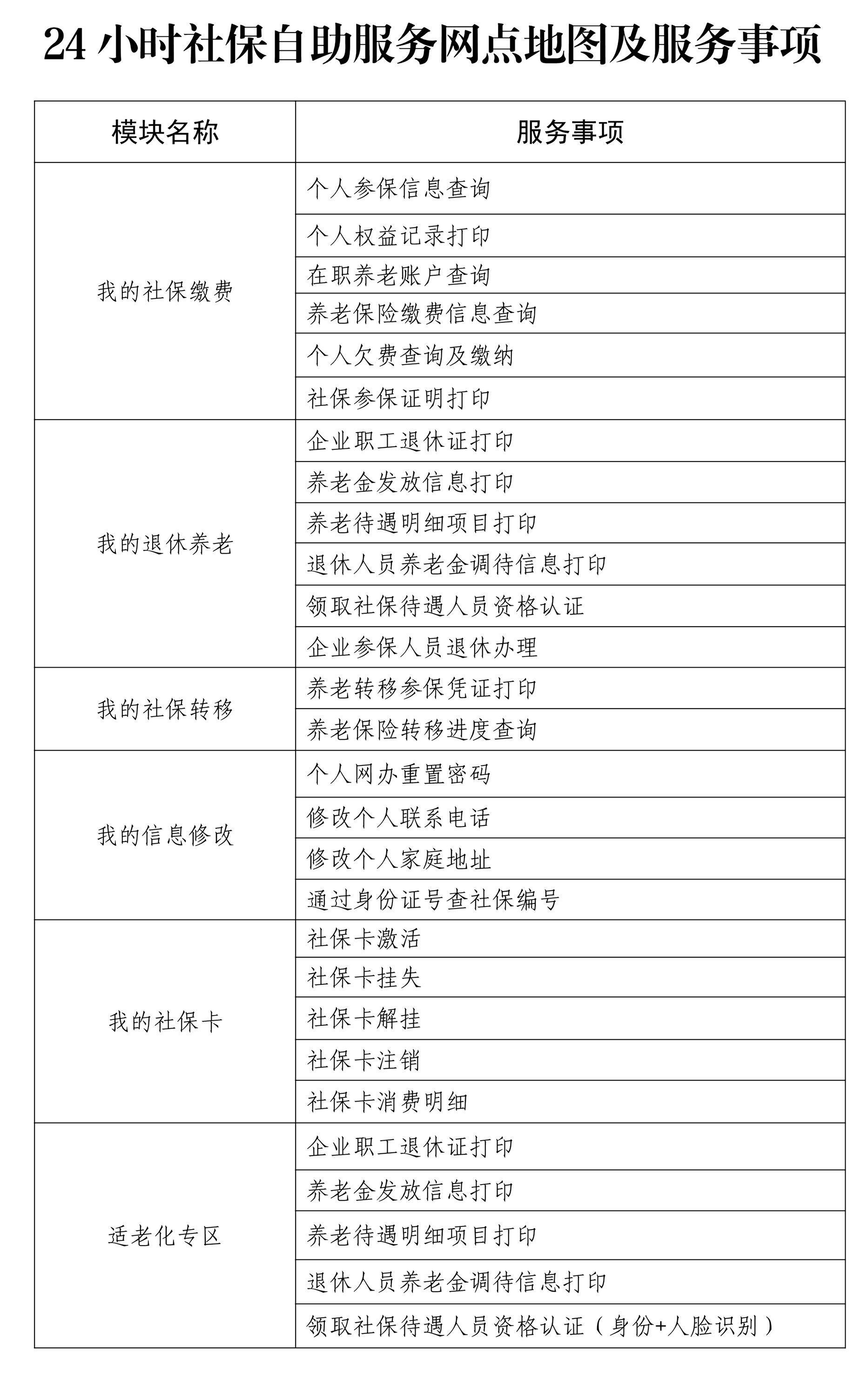 24小时社保自助服务网点地图及服务事项