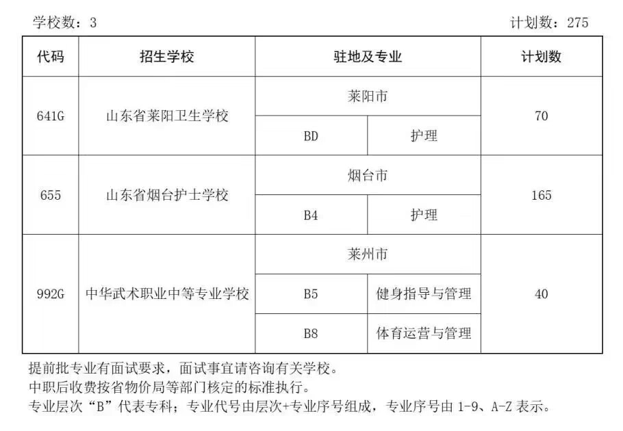 烟台市2024年联办五年制、三二连读高等职业教育有面试要求专业招生来源计划(第三阶段提前批)