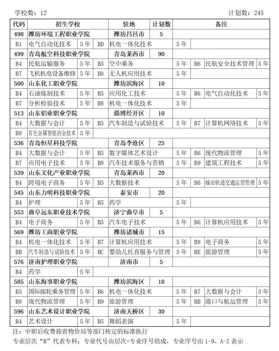 烟台市2024年联办五年制高等职业教育招生来源计划(第三阶段普通批)