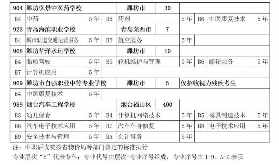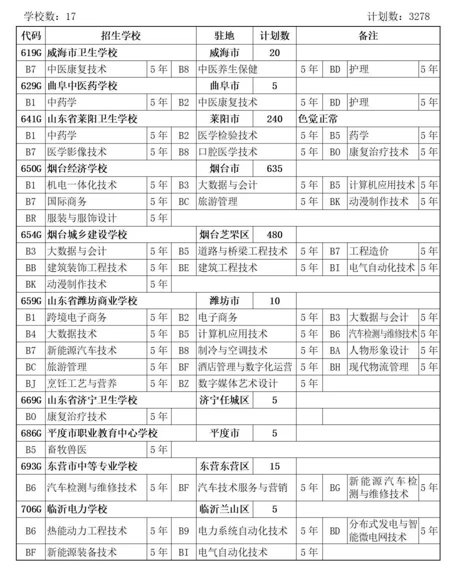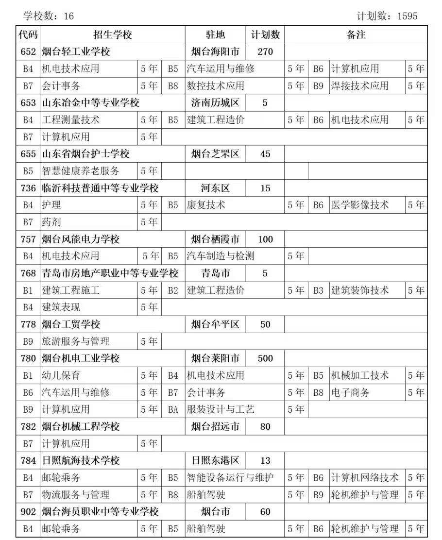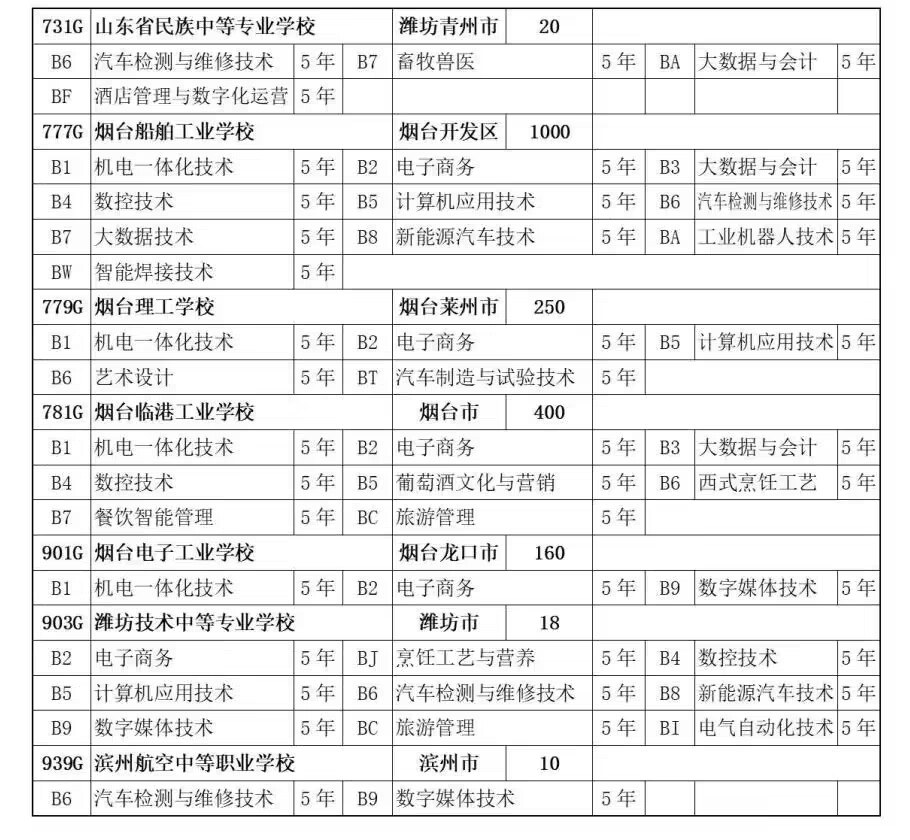 5月9日,烟台市教育局公布2024年初中起点高等职业教育来源计划,具体如下: